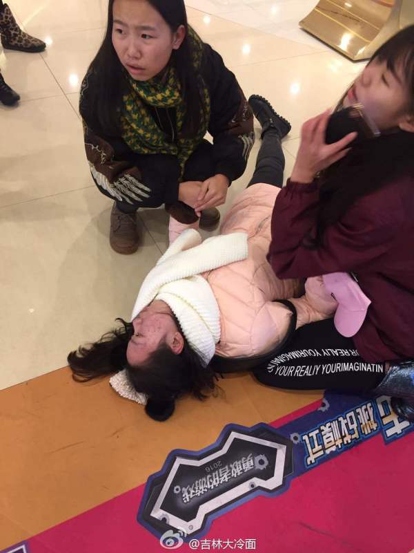 中国吉林网讯 记者 金东华 11月12日下午1点多,在吉林市世纪广场地下购物公园迪卡侬专卖店前,三名女孩逛商场的过程中,其中一人突然晕倒抽搐,两个女伴一时间不知所措。