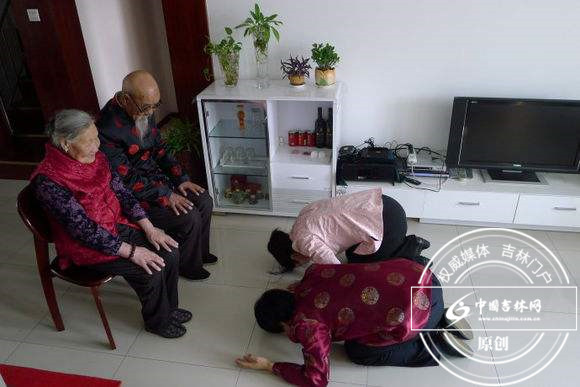 流传于伊通一带的拜年谣:“三十晚上坐一宿,大年初一挨家走,拜个年,磕个头,祝福爷爷、奶奶、姥爷、姥姥全都活到九十九”。