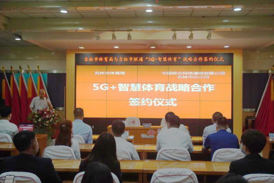 2020年9月1 日,吉林市体育局与吉林市联通公司战略合作签约仪式隆重举行。吉林市体育局局长王一鸣、副局长刘义军、吉林市联通总经理桂作宝、 副总经理于辉及双方相关部门领导出席了签约仪式,共同见证了用5G赋能体育,智慧体育时代的正式开启。