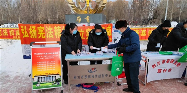 12月3日,舒兰市卫生健康局联合市疾病预防控制中心(市卫生监督所)在市文化广场组织开展“以习近平法治思想为指引 坚定不移走中国特色社会主义法治道路”为主题的宪法宣传活动。