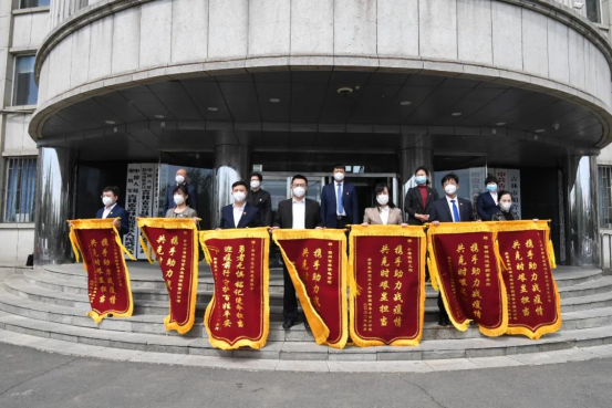 5月17日,船营区人大常委会在区政府1号楼门前举行向在抗击新冠肺炎疫情工作中做出突出贡献的单位和个人颁赠锦旗活动。