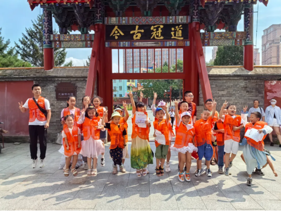 在吉林市文庙博物馆,孩子们在四位小讲解员的讲解下,深度了解文庙的历史和建筑风格,感受到了中国传统文化的博大精深以及作为“江城人”的文化自信。参观后,街道为吉林市文庙博物馆的小讲解员送上致谢证书和学习用品以及带有“幸福美味老北关”标识的冰箱贴等小礼物,并为参加研学营的儿童发放带有吉林市文庙博物馆打卡印章的精美的研学证书。