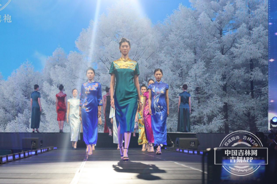 颁奖典礼上,金、银、铜奖和10个优秀奖获奖作品依次以成衣形式亮相,与 “吉派” 新中式服装工作室制作的 200 多套精美旗袍、新中式服装同台展示。每一件服装都仿佛诉说着一个故事,从细腻的刺绣到精致的剪裁,从传统的色彩搭配到现代的设计理念,将历史传承与时尚秀场完美融合。