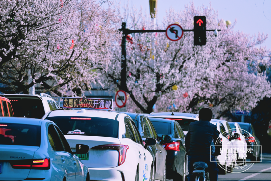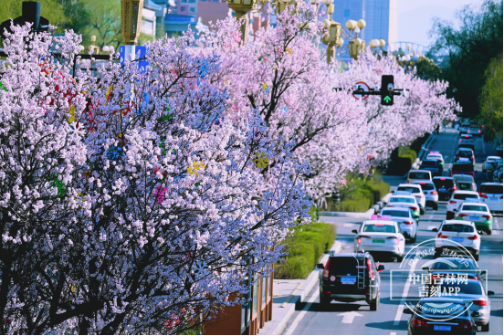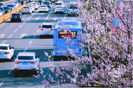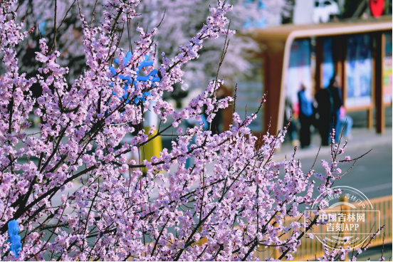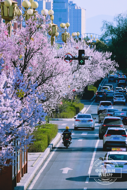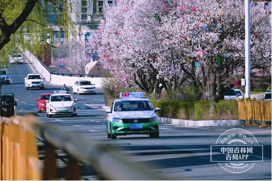 近日,随着气温回升,吉林市主干道吉林大街迎来了杏花盛放期。道路两旁的杏花树一夜之间全都开出了粉色的杏花,繁花似锦,与嫩绿的柳枝相互映衬,构成了一幅生机勃勃的春景图。