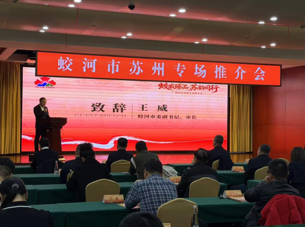 蛟河市委副书记、市长王威,副市长陈连波,吉林市商务局副局长车永光,苏州轨道交通集团市场营销总监、资产公司副董事长张道清,总经理徐红军,江苏省吉林商会、苏州市吉林商会会长惠飞及在苏企业家代表参加推介会。