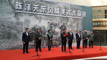 吉林省政府文史研究馆副馆长葛世文、吉林市人民政府副市长陈东、吉林市政协副主席吕桂茹等市领导,吉林市旅游局、吉林市文广新局、吉林市文联负责人,陈涤先生及省、市美术家协会主席、会员等出席了关东风情美术作品展开幕式。上午10点,市政府副市长陈东宣布“陈涤关东风情美术作品展开幕”。