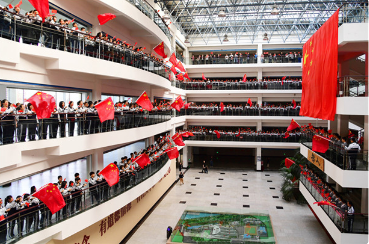 参与此次校园“快闪”活动的包括幼儿园、小学、初高中、中职学校,参与的师生将近 5 万人。有的学校邀请了家长参加,还有的学校走出校园,带动市民同唱爱国歌。