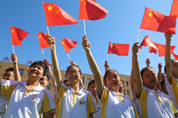 近日,一场以“歌唱伟大祖国 献礼七十华诞”为主题的校园“快闪”活动在吉林市 50 所学校接力展开。5万名师生挥舞国旗,用歌声与朝气,礼赞伟大祖国,礼赞新时代。