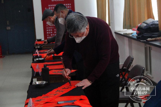 吉林市书法家协会书记、专职副主席秘书长许义等书法家们挥毫泼墨,为群众书写春联和“福”字。一副副寓意平安和谐、吉祥如意的春联,带着美好祝愿,为即将到来的春节增添了喜庆氛围。