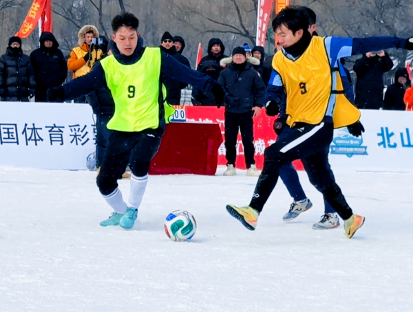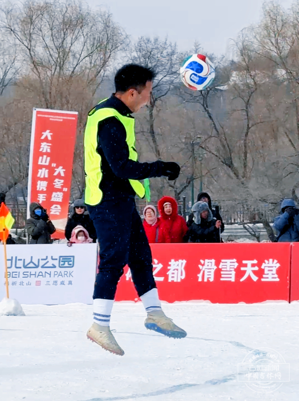 1月27日上午,吉林市北山公园东湖冰面上人头攒动,吉林市丰满区红太阳足球队与贵州省黔东南苗族侗族自治州榕江县足球队在此进行5人制雪地足球友谊赛。这场跨越3000多公里的邀约,以球为媒搭建文化桥梁,诠释了体育精神的真谛。