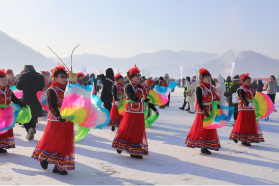 1月31日,“千塘磐石·冬捕有约”磐石市第五届冬捕季活动在官马水库启幕。红绸翻飞,秧歌队踩着鼓点旋开朵朵暖色;金狮腾跃,威猛的舞姿引来阵阵喝彩。这热闹劲儿仿佛一把火,瞬间点燃了冰面,也引着人群向湖心聚拢——那里,冬捕的重头戏正待开场。