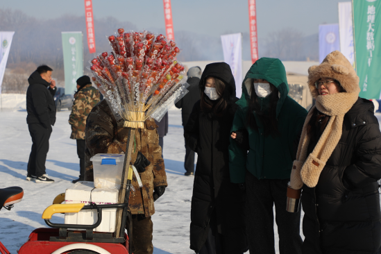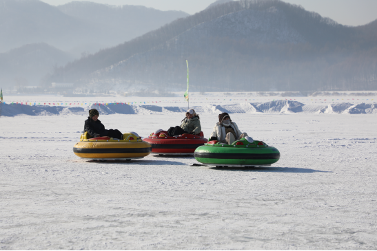 孩子们举着糖葫芦奔跑,影子拉得老长;老人捧着热乎的烤地瓜,闲话着今年的收成;情侣共裹一条围巾,分享同一碗鱼汤的温暖。冰湖的另一侧也已欢腾起来——雪圈从坡道疾驰而下的尖叫声,冰壶碰撞的清脆声,雪地摩托的轰鸣声。孩子们在雪地里打滚,大人也仿佛回到童年,这片冰成了所有人的游乐场。