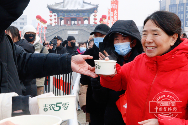“这年猪炖菜可太香了,我在队里排着都闻到香味了!”2月4日,正值立春,吉林市北山人民广场上人头攒动,“大东山水迎天下·年猪香味进万家”村厨“吉农黑猪”年猪宴活动正在这里举行。一条近百米长的队伍从广场中央排到了德胜门城门楼,大家翘首以盼热气腾腾的年猪烩菜出锅。