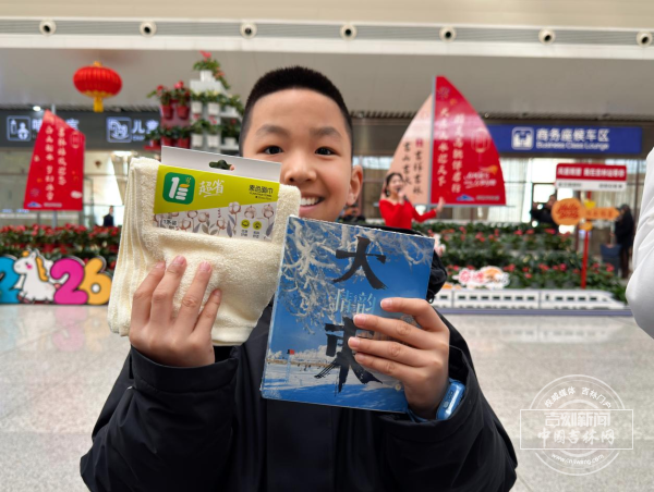 为进一步拉近与旅客的距离,活动现场还设置了伴手礼发放环节,旅客参与互动即可领取包含书籍、毛巾、明信片等在内的伴手礼,在欢声笑语中传递新春祝福,让候车时光变得温馨而难忘。
