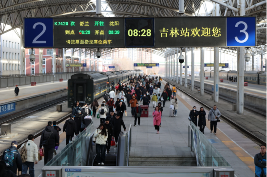 2026年春节期间(2月15日至2月23日),沈铁吉林车务段吉林站迎来客流高峰,9天累计到发旅客41.45万人,日均4.61万人,探亲流和旅游流叠加。正月初七为峰值日,单日到发旅客6.51万人,较2025年春运同期6.24万人增加0.27万人,增幅4.33%。