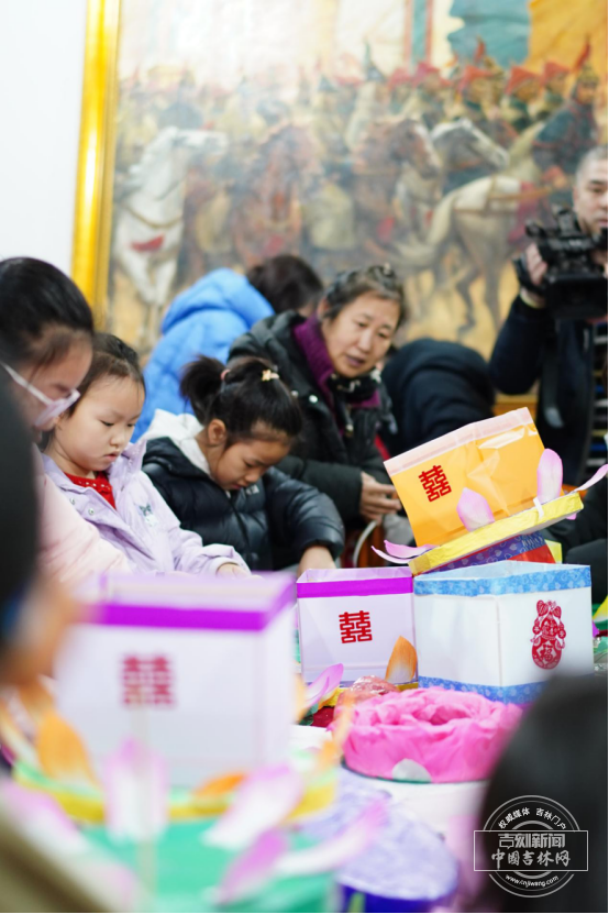 2月27日,吉林水师营博物馆内聚集了大量前来学习制作、认购河灯的市民,现场河灯非遗匠人正在耐心的给大家讲解河灯的制作要领。