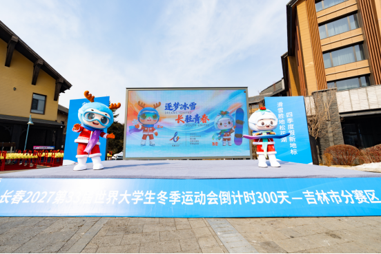 3月21日,长春2027第33届世界大学生冬季运动会倒计时300天主题活动在松花湖度假区正式启动。当天11时30分,两名大学生分别装扮成大冬会吉祥物人偶,脚踩滑雪板在前方领滑,紧随其后的是由300名北华大学学生、VSKI滑雪学院教练以及滑雪爱好者共同组成的方阵。随着指令下达,全体人员沿雪道顺势滑下,场面气势恢宏,十分壮观。