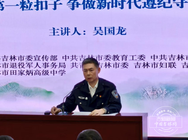 中国好人、吉林市道德模范协会会长、市关工委法治教育关爱团副团长吴国龙为学生带来《扣好人生第一粒扣子 争做新时代遵纪守法好学生》专题宣讲。他以鲜活的案例,为在场学生上了一堂生动的思想道德与法治教育课,引导青少年扣好人生的第一粒扣子,迈好人生的第一个台阶,争做有理想、敢担当、能吃苦、肯奋斗的新时代好学生。