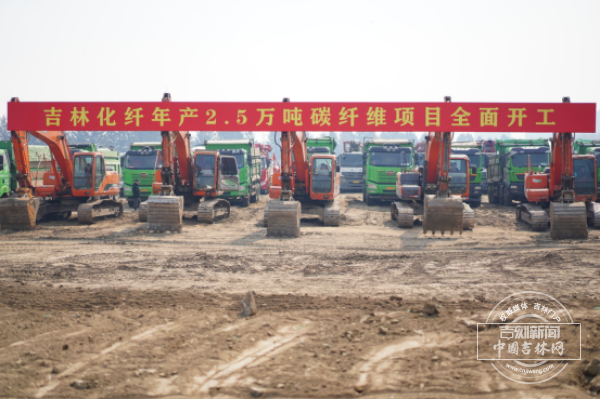 当日上午,吉林化纤集团碳纤维产业园对面的建设现场一派繁忙景象:施工机械整齐排布,建设者们精神饱满、整装待发。随着 “全面开工” 的指令下达,现场汽笛齐鸣,挖掘机随即启动作业,年产2.5万吨碳纤维项目顺利破土动工,拉开了产业升级的序幕。