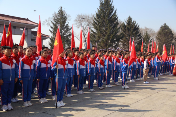 随后,吉林市滨江南路学校学生代表献唱《我们是共产主义接班人》,稚嫩而坚定的歌声展现了新时代青少年传承革命精神的决心。